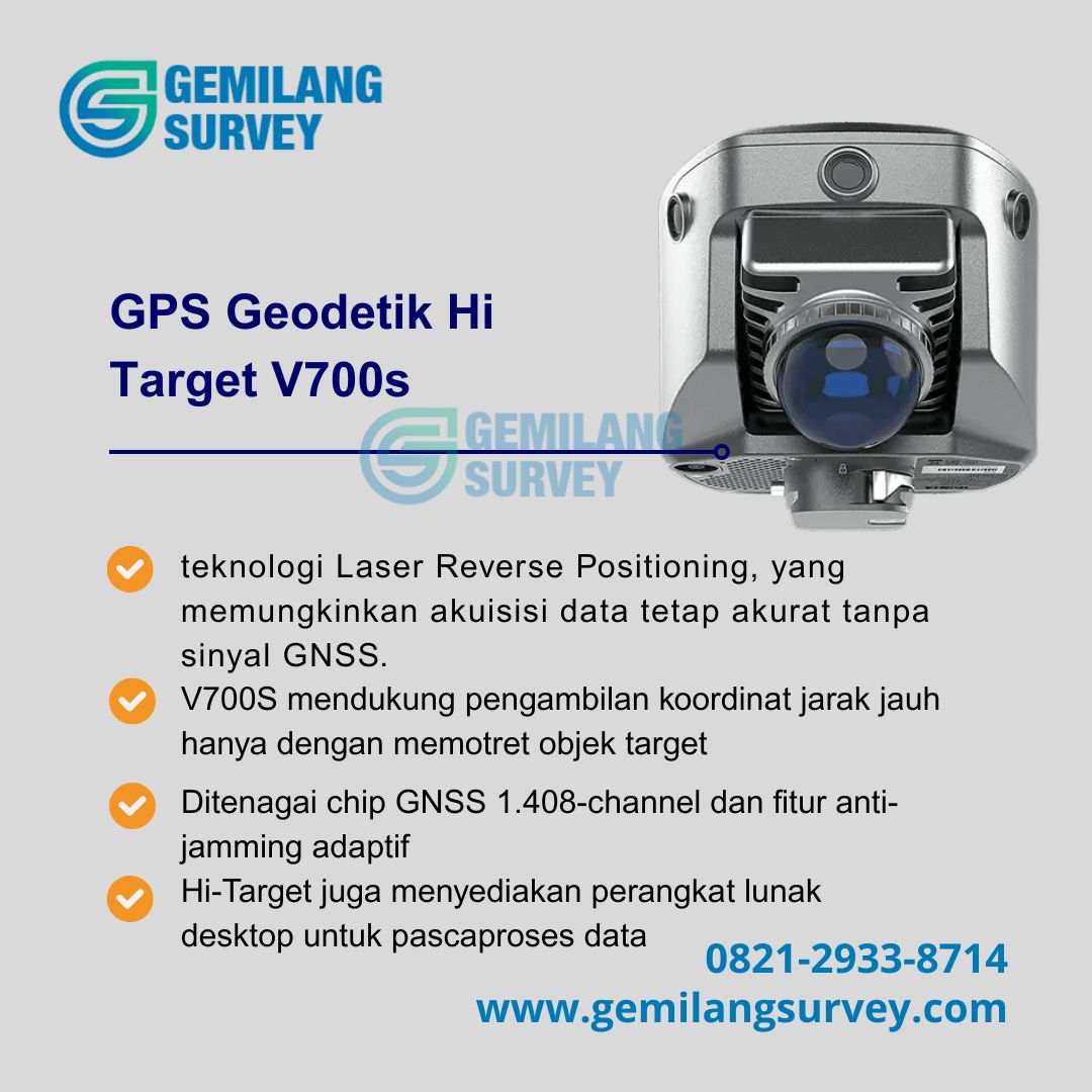 Segera hubungi Gemilang Survey (0821-2933-8714) untuk konsultasi gratis, booking demo, atau langsung pesan GPS Geodetik Hi-Target V700s sekarang juga.
